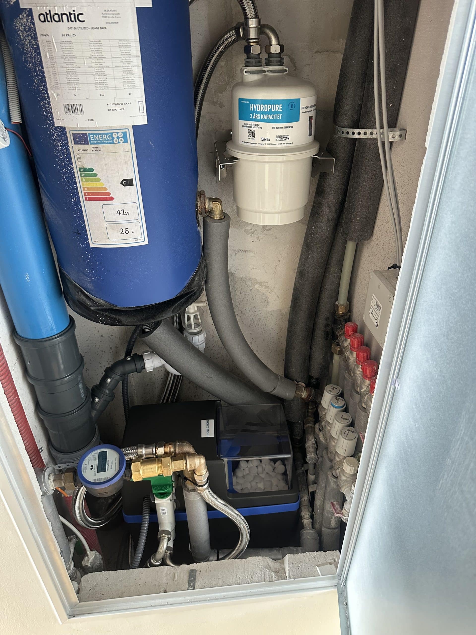 Et blødgøringsanlæg installeres lige efter vandmåleren, hvor vandet kommer ind i huset.