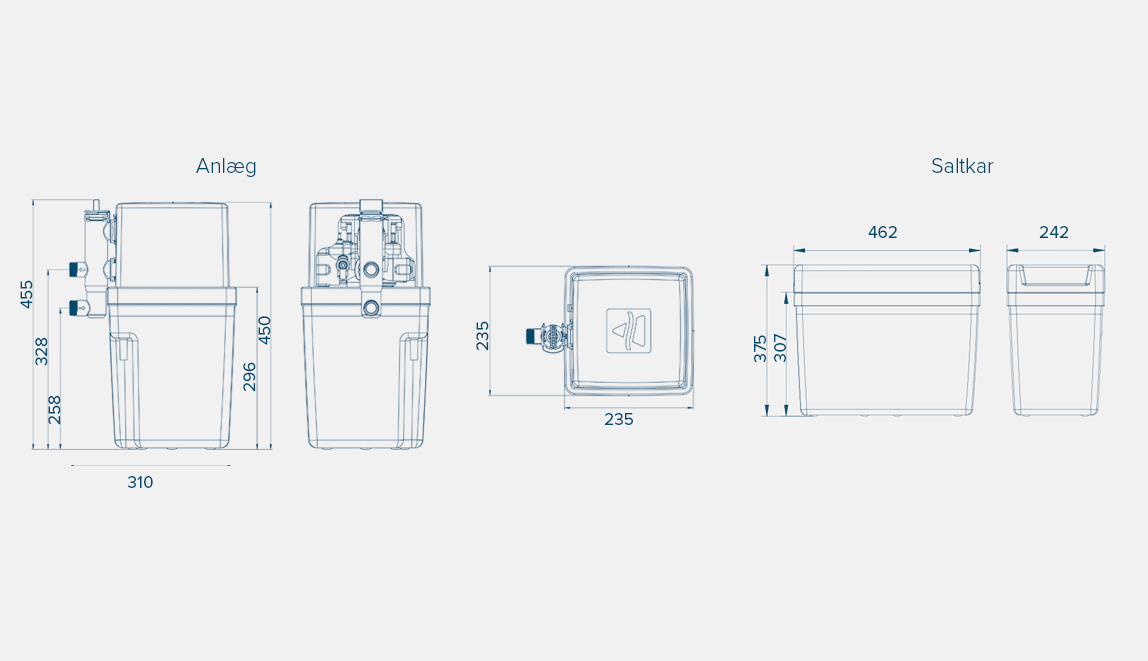 Anlæg med stort separat saltkar, der giver ekstra lang drifttid imellem saltopfyldningerne.